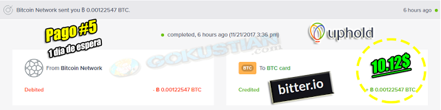 Para cobrar tus ganancias en Bitter.io debes tener al menos 10.000 satoshis acumulados para poder depositarlos en tu cuenta de BitCoin.