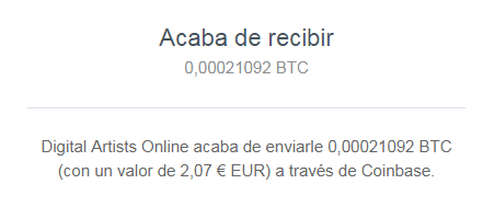 Mi primer pago en Digital Artists Online, realmente funciona muy bien. Me han pagado 0,0002 btc (más o menos 2 euros).