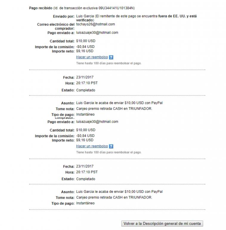 Triunfador está disponible para todos los países. Los regalos pueden tardar hasta días en llegar a destino y los pagos entre 2 y 3 días.